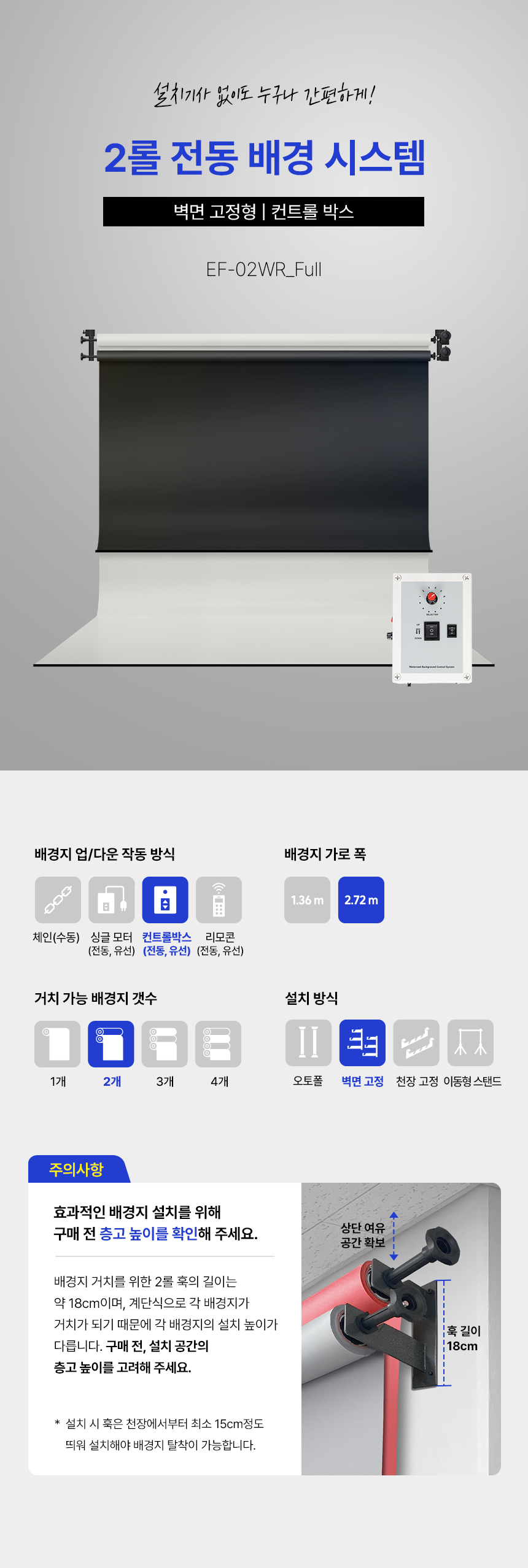[À¯ÄèÇÑ»ý°¢] º®¸é °íÁ¤Çü Àüµ¿ ¹è°æ 2·Ñ ½Ã½ºÅÛ EF-02WR_Full SET 2.7m
