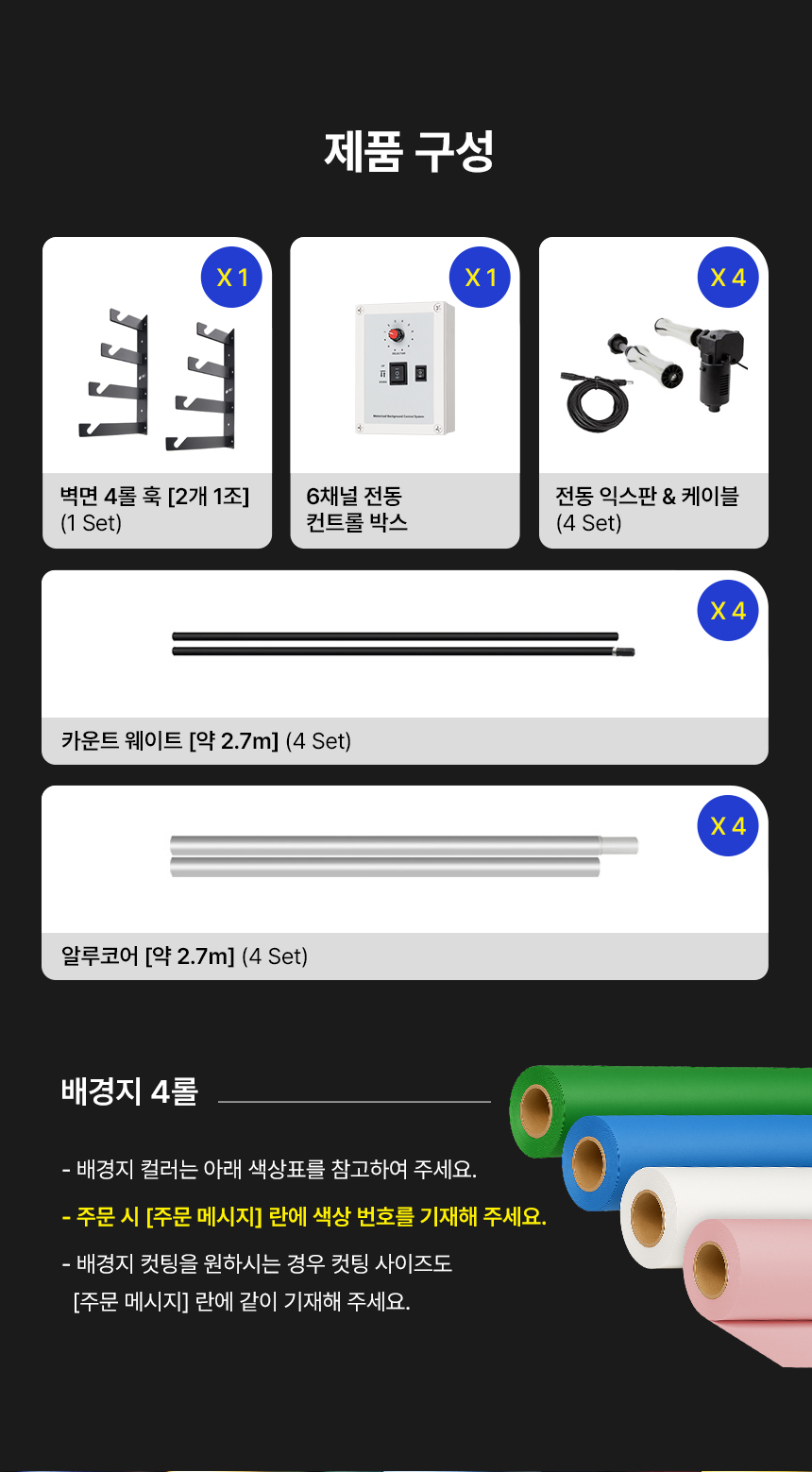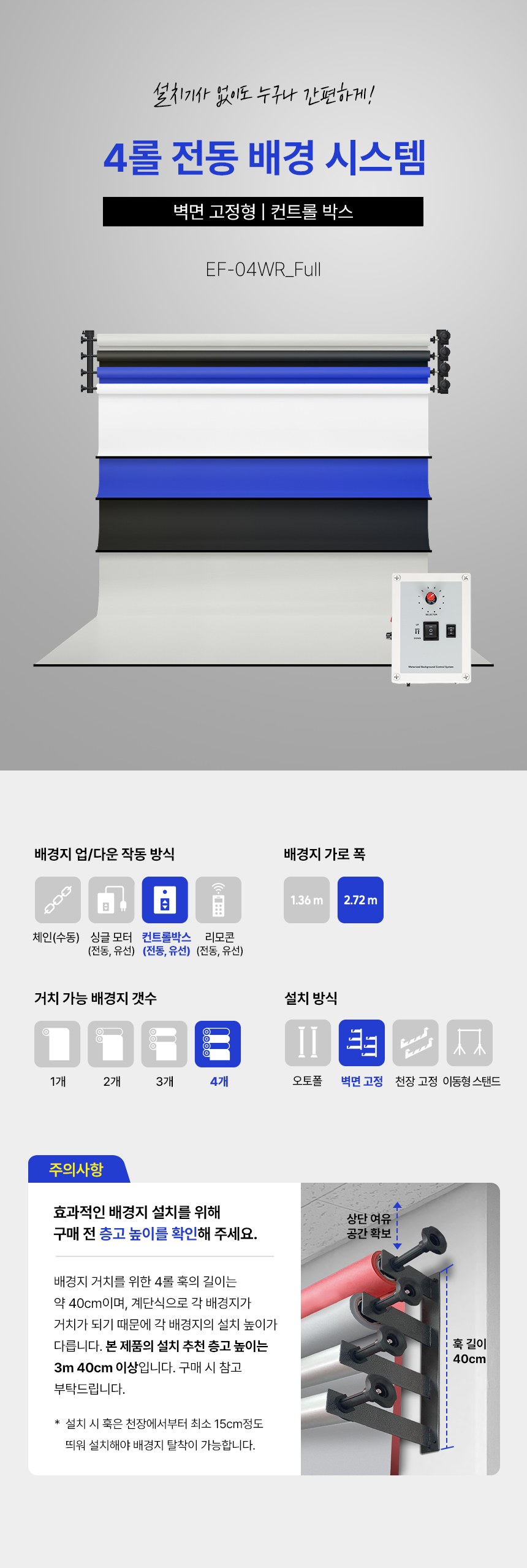 [À¯ÄèÇÑ»ý°¢] º®¸é °íÁ¤Çü Àüµ¿ ¹è°æ 4·Ñ ½Ã½ºÅÛ EF-04WR_Full SET 2.7m
